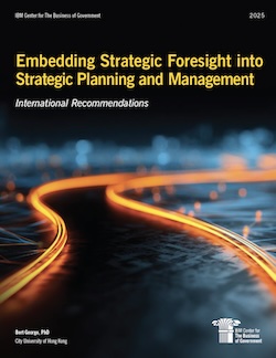 The report builds on multiple IBM Center reports that highlight tools and strategies that work to help government leaders navigate uncertainty and more effectively anticipate the unexpected, including Addressing Complex and Cross-Boundary Challenges in Government: The Value of Strategy Mapping; Preparing Governments for Future Shocks; A Guide to Adaptive Government: Preparing for Disruption.